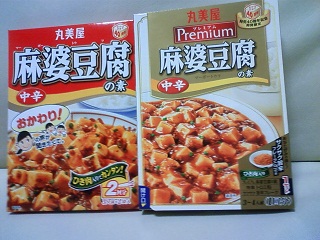 丸美屋 麻婆豆腐の素「プレミアム麻婆豆腐の素<中辛>」と「麻婆豆腐の素