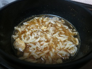 作り方は水を入れてその中にパスタ&スープの素を入れかき混ぜてレンジで4分♪