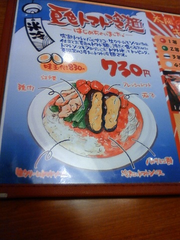 夫は太陽のチーズラーメン、私は夏の新作の夏色トマト冷麺を食べました。