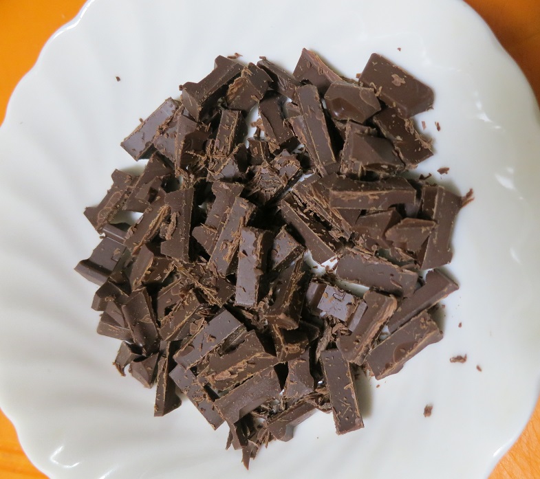 チョコレートを細かく切ったものを電子レンジで溶かして