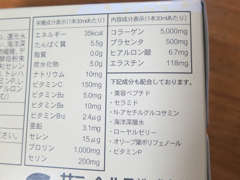 コラーゲン、プラセンタ、ヒアルロン酸、エラスチン、美容ペプチド他