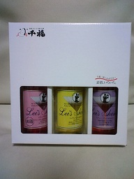 ピーチなさくら、レモンなひまわり、グレープなひまわりの3本入り。