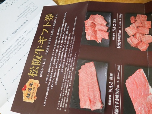 松坂牛ギフト券が当たりました♪嬉しい!!