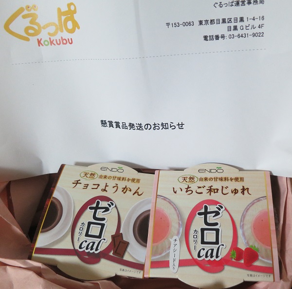 ぐるっぱさんの懸賞で遠藤製餡チョコ生ようかんといちご和じゅれ