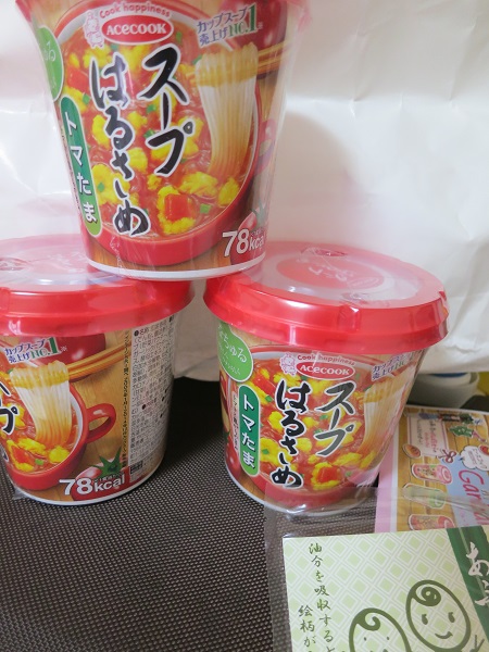 そして今日は「ポチカム」さんからエースコックのスープはるさめが届きました♪